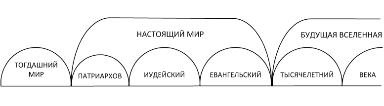 Третья большая эпоха – “будущая вселенная” – от второго пришествия Христа и дальше, охватывает Тысячелетний век, то есть “времена реституции”, после чего наступят “будущие века”, подробности которых нам не выявлены. Нынешние откровения касаются исцеления человека от греха, а не будущей вечной славы.